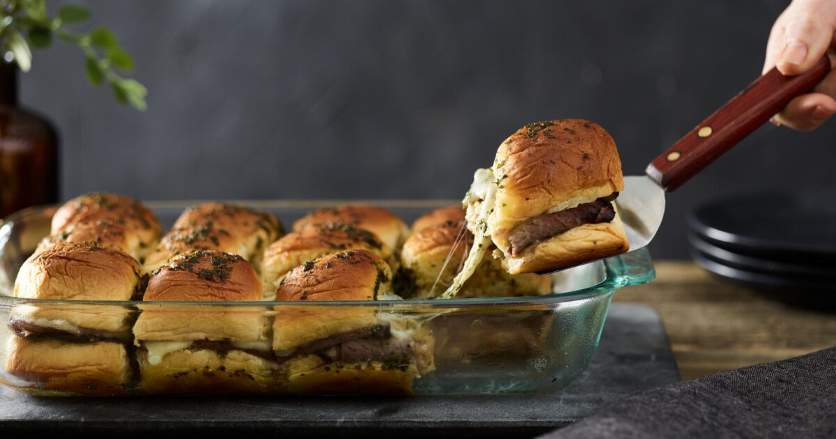 For a no-fuss yet flavor-packed main course, these Easy Roast Beef Potluck Rolls are a fantastic option. Thinly sliced roast beef is layered with melty cheese and baked inside soft rolls for a handheld dish that’s as delicious as it is simple to make. Plus, the buttery, seasoned topping adds an extra layer of irresistible flavor.