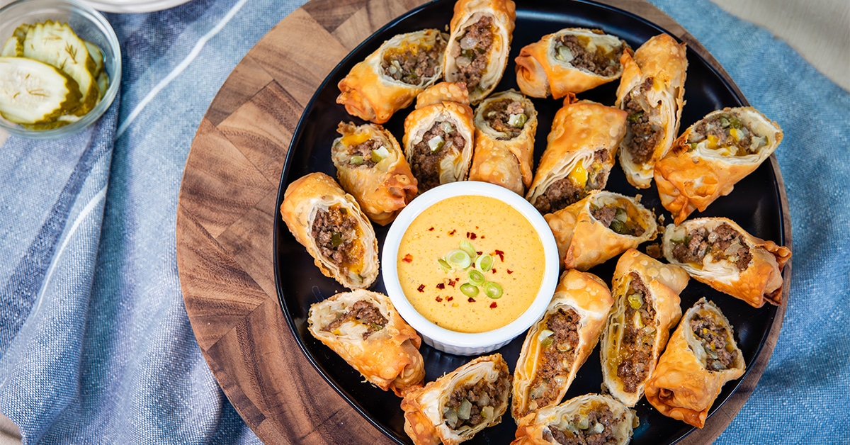 8. Cheeseburger and Grillo’s Pickles Egg Rolls