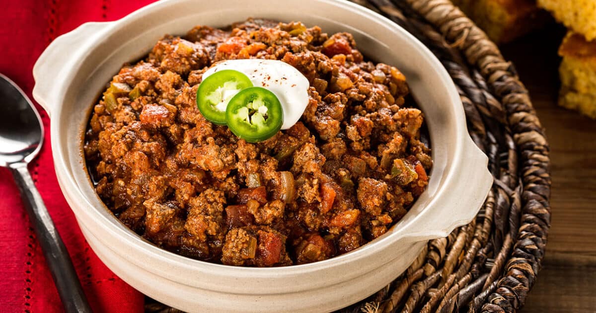 No beans? No problem! This Lone Star classic is all about hearty chunks of beef simmered to perfection in a bold, spicy chili sauce. Whether served over cornbread or on its own, this recipe is a Texas treasure.