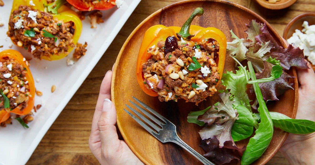 Mediterranean Beef-Stuffed Bell Peppers