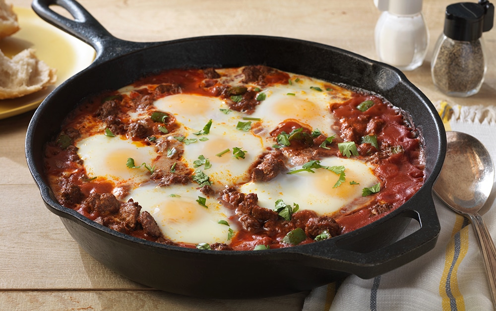 Saucy Beef with Baked Eggs