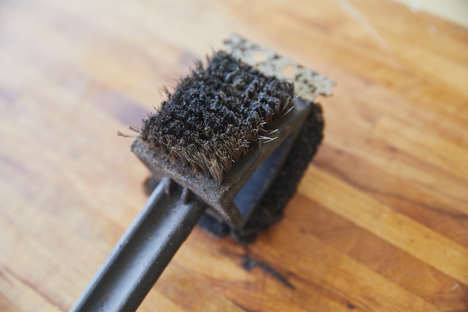 Safety note: We don’t recommend cleaning your grill with a grill brush, unless it’s brand new, because the bristles from a worn brush can get on the grill grates and end up in your food. Unfortunately, this could end up with an unpleasant eating experience or a trip to the ER.