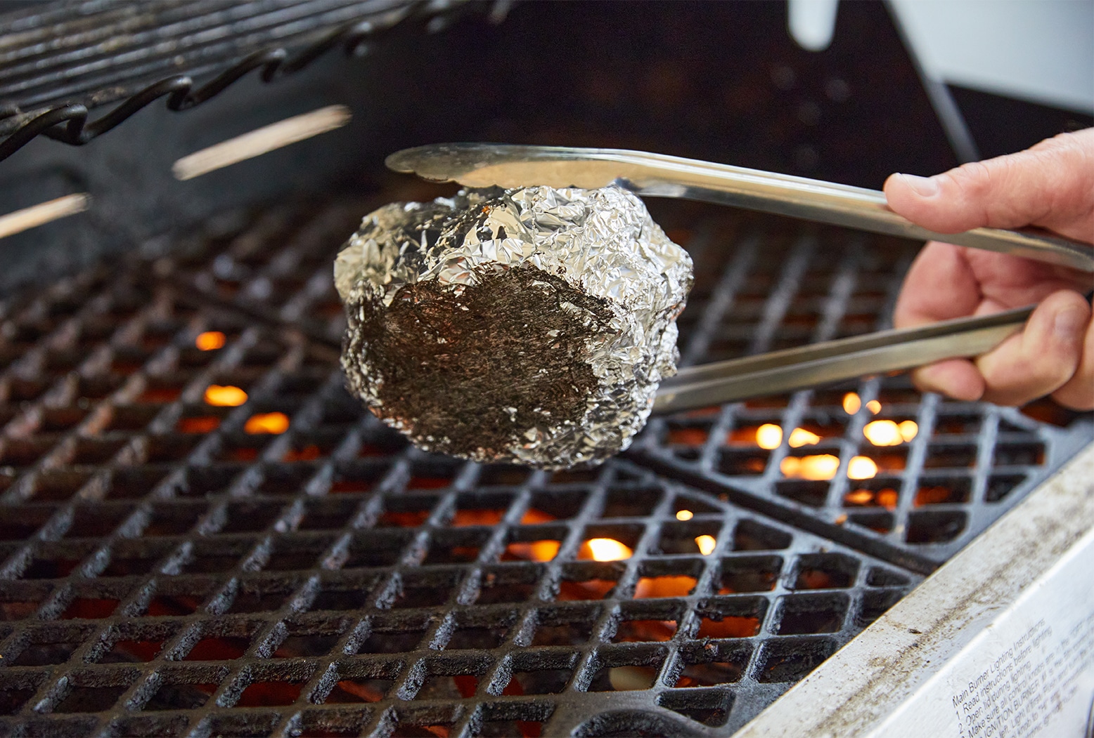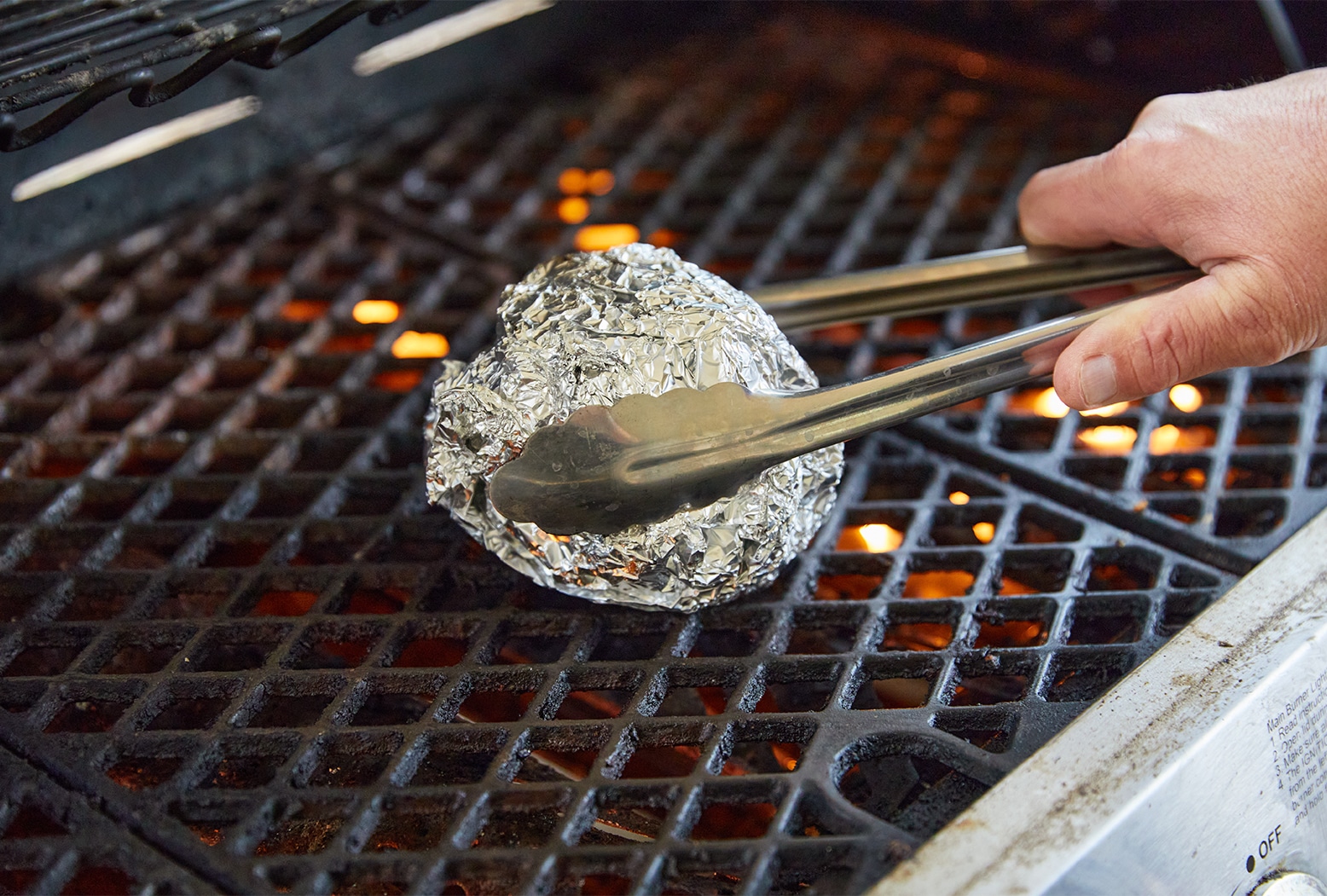 Step 2: Once, the grates are nice and hot, take your foil ball and scrape the grates to pick up any large debris.