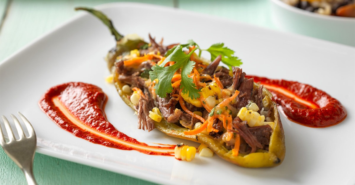 Beef Stuffed Chile Relleno with Guajillo Chile Sauce in Instant Pot