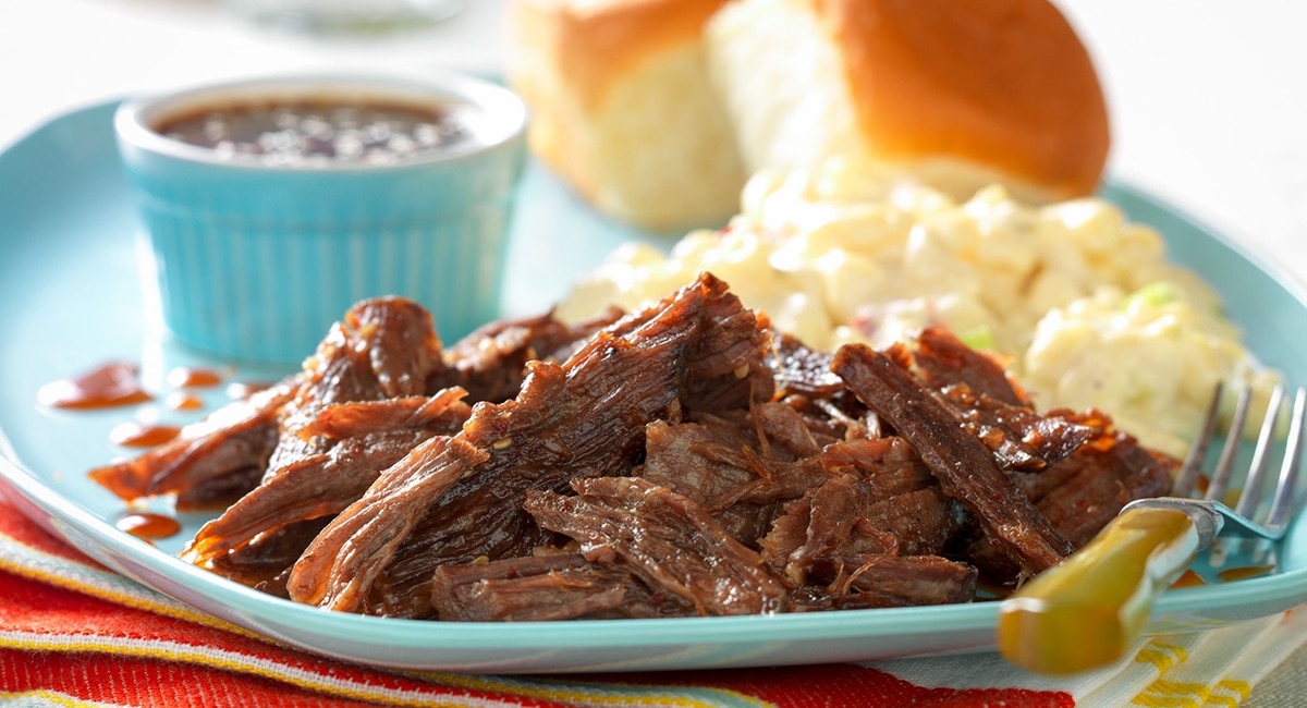 Try this sweet and savory twist on the classic shredded beef chuck roast. Serve with mashed potatoes for the ultimate weeknight comfort.