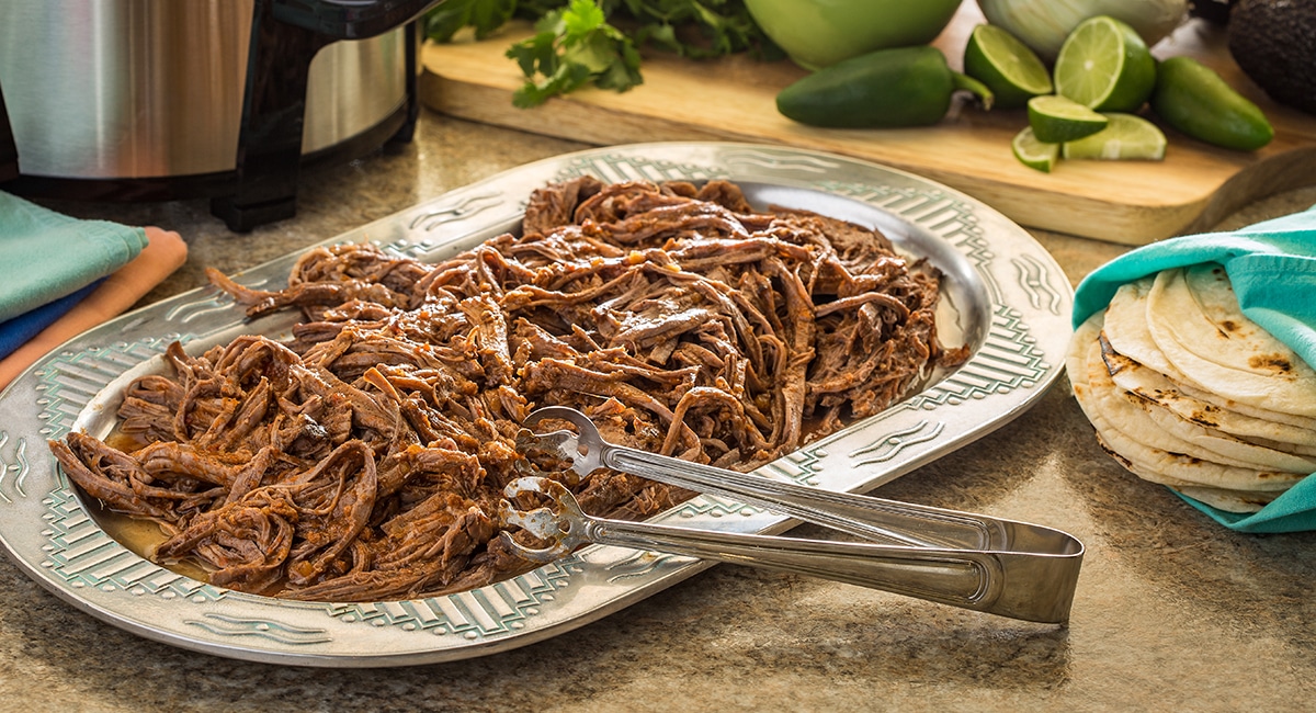 Please any crowd with this versatile shredded beef recipe. Slow cooked beef is even delicious the next day served in a sandwich or tacos.