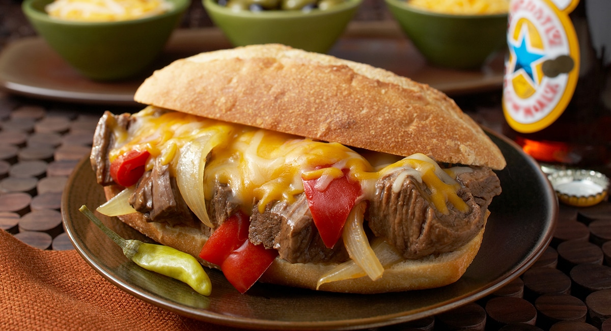 Sweet Onion Pepper Beef Sandwiches with Au Jus