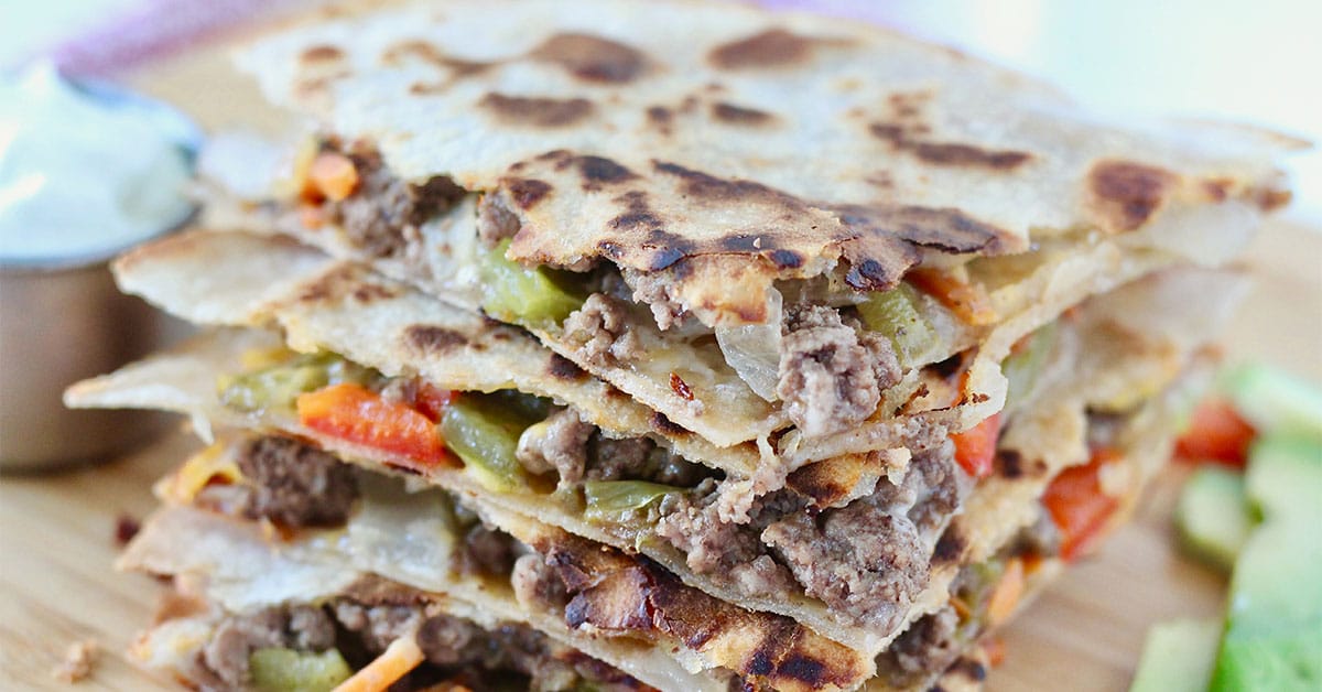 Cheesy quesadillas filled with savory ground beef and vegetables are the perfect meal for the whole family. Get this simple and tasty recipe from Mary Ellen Phipps, MPH, RDN, LD of Milk and Honey Nutrition.