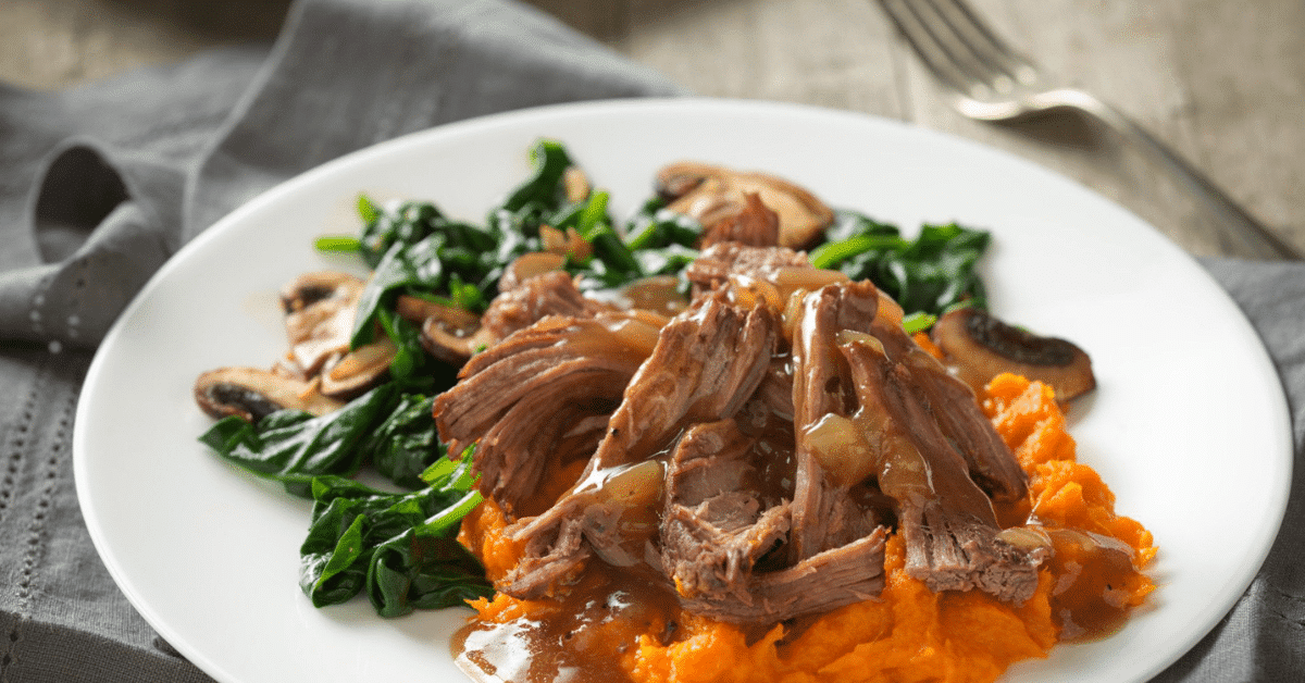 Beef Pot Roast with Cider Gravy and Maple Sweet Potatoes