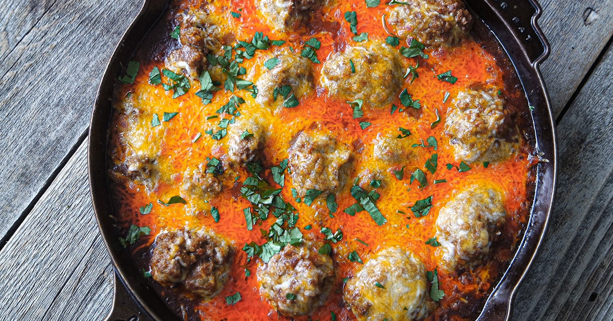 Satisfy your comfort food cravings with cheesy Tex-Mex meatballs. Serve with rice and beans or even in a sandwich or atop a salad! Recipe by Jess Pryles.