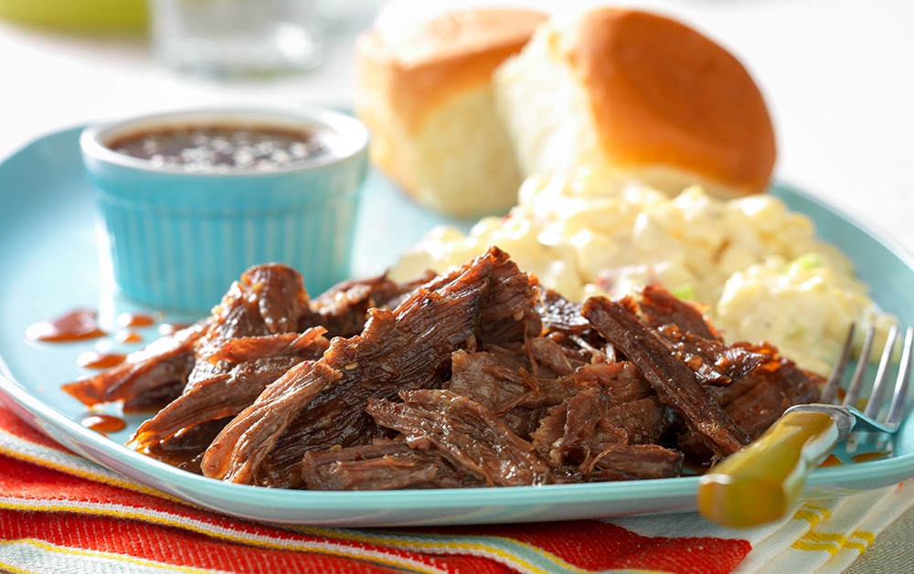Slow Cooked Whiskey Molasses Shredded Beef