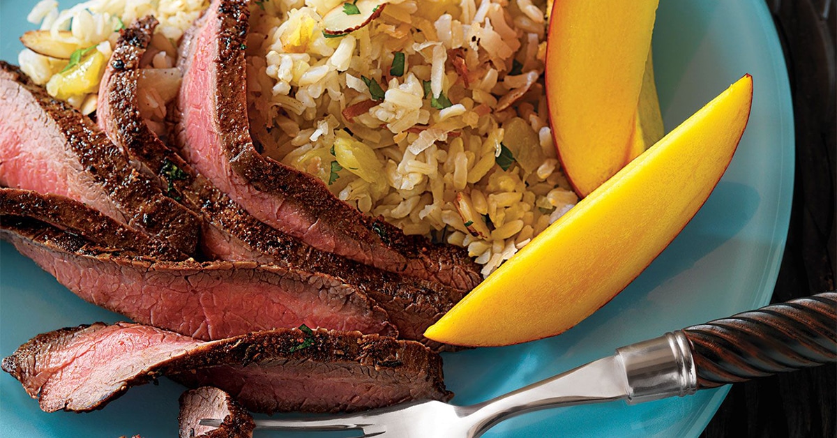 2. Caribbean Flank Steak with Coconut Rice
