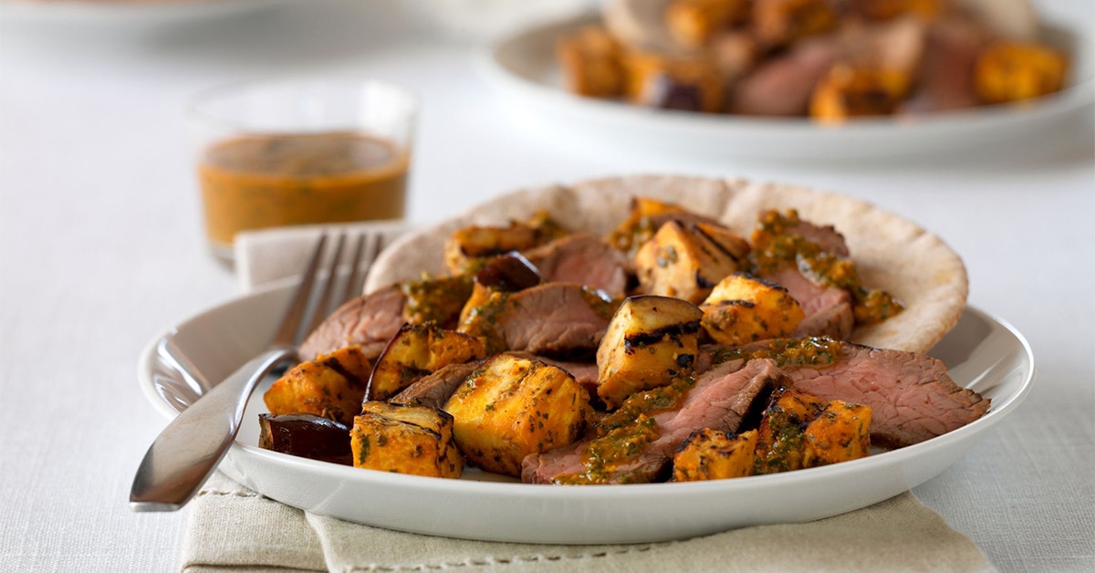 9. Zesty Moroccan Grilled Beef and Eggplant