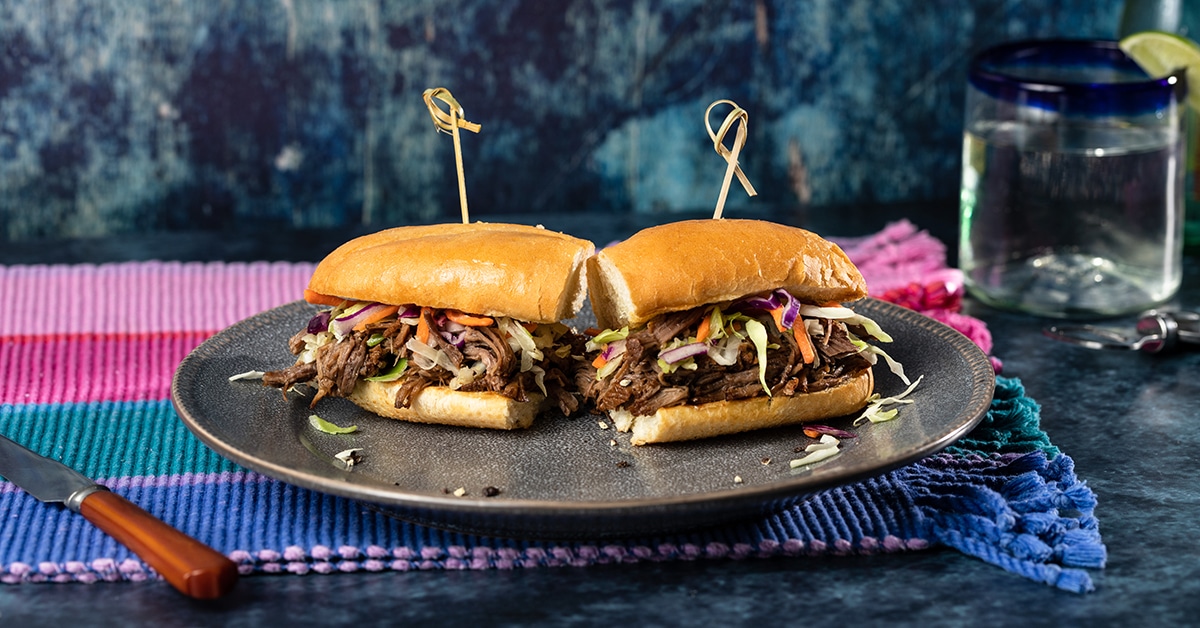 Talk about a perfect pair – This barbacoa torta with fiery citrus slaw inspired by Brick Vault Brewery & Barbecue is simple and delicious.