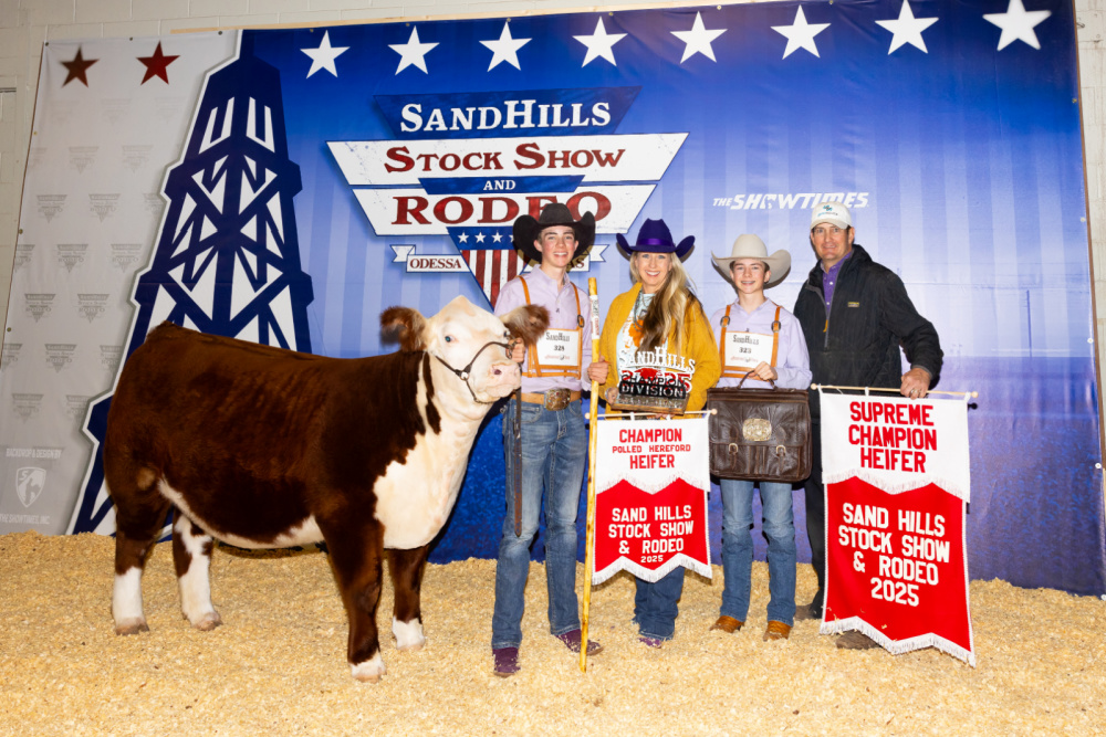 Nestled in Meadow, Texas, Day Show Cattle has been raising high-quality cattle and crops, including cotton, corn, peanuts, wheat, and hay, since 1979. Spanning 30,000 acres and running 700 cattle, the cow/calf operation located southwest of Lubbock specializes in show steers, mostly Hereford, marketed through live auctions, online sales, and private treaty agreements. The family also raises their own commercial recipient cows for embryo transfer—an investment in the future of their herd and the industry.